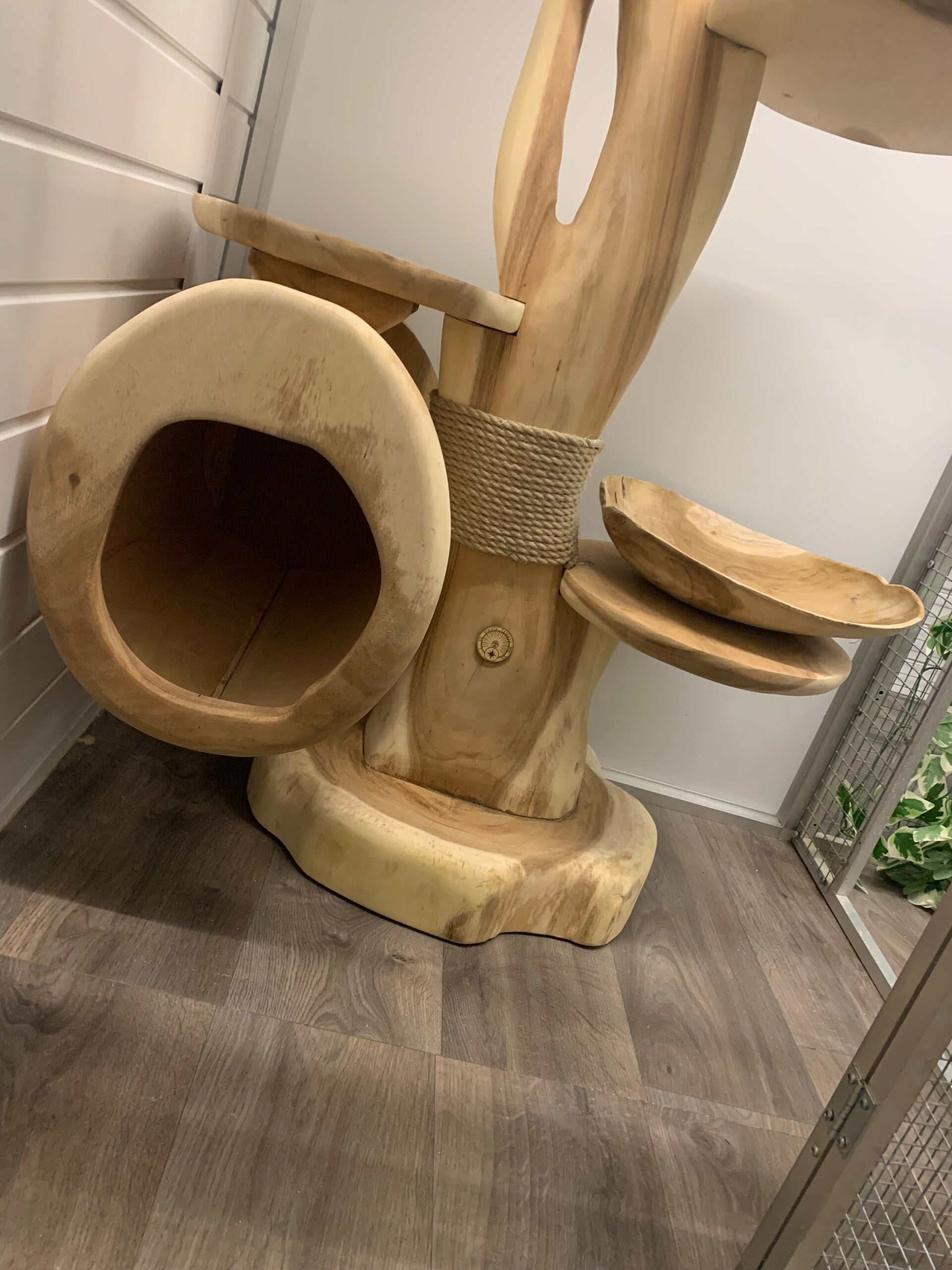 Deze kattenhuisjes zijn gemaakt om aan onze krabpalen te bevestigen, dit is een eigen creatie van Omnia Tempus.