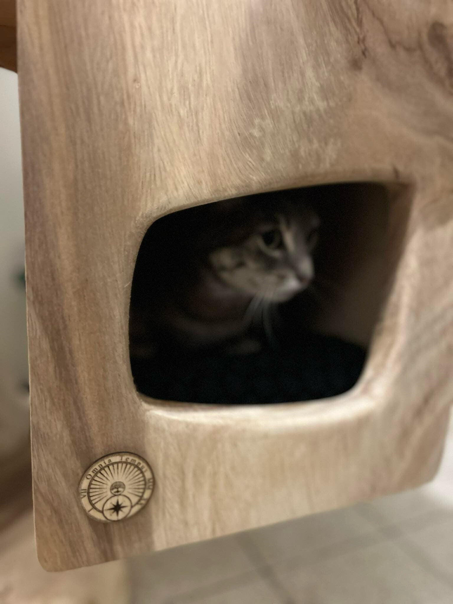 These cat houses are made to attach to our scratching posts, this is Omnia Tempus' own creation.