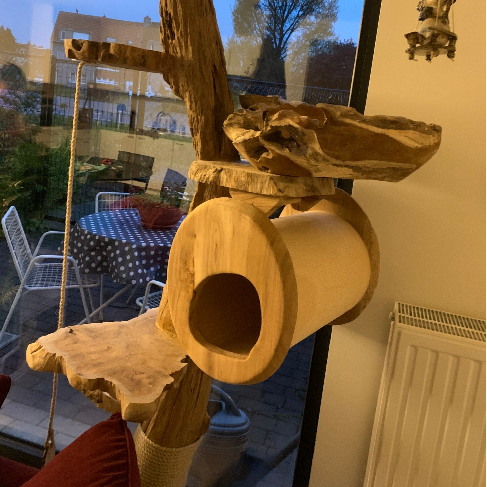 De huisjes die apart besteld worden, worden steeds voorzien van al het materiaal om ze aan de krabpalen te bevestigen.