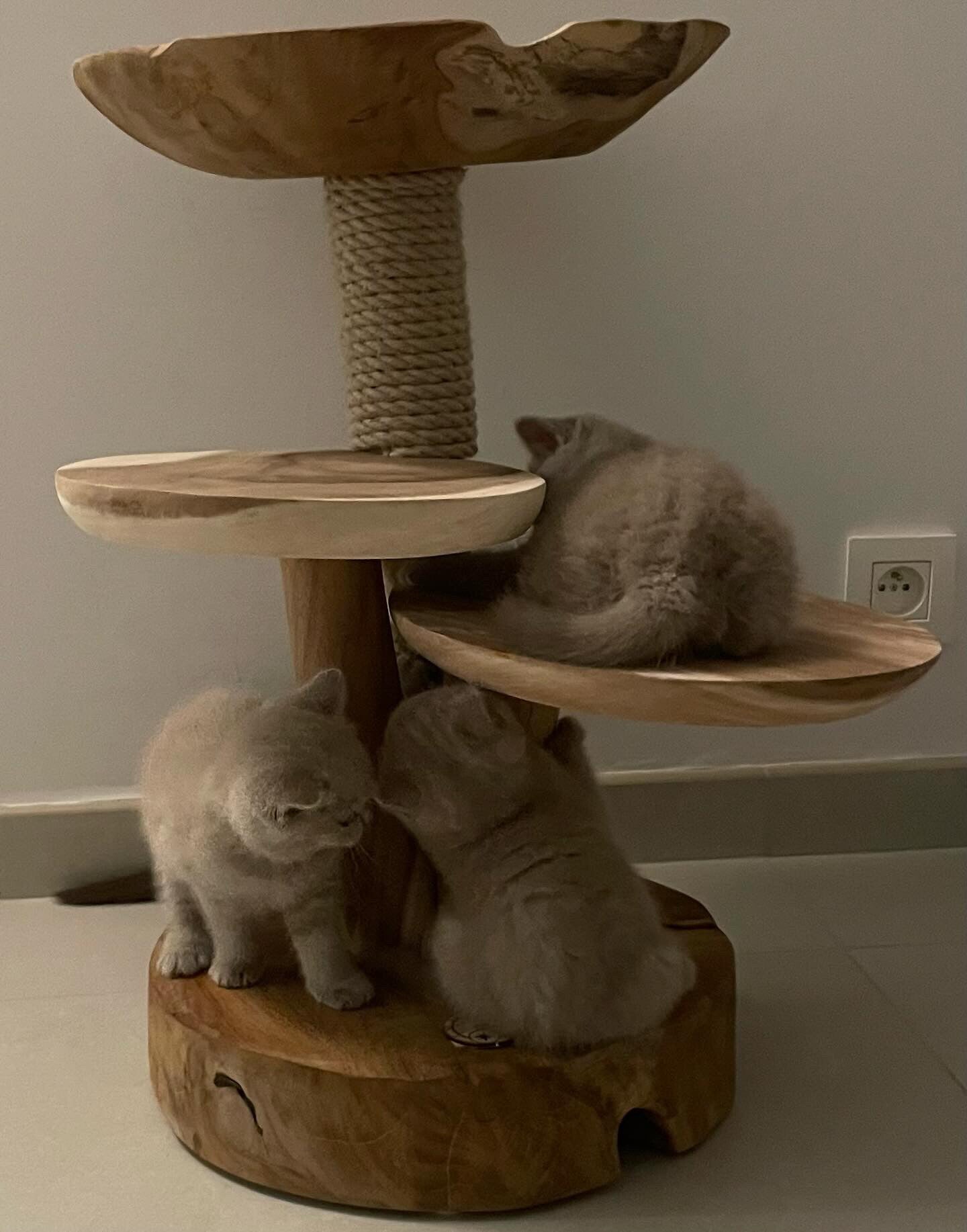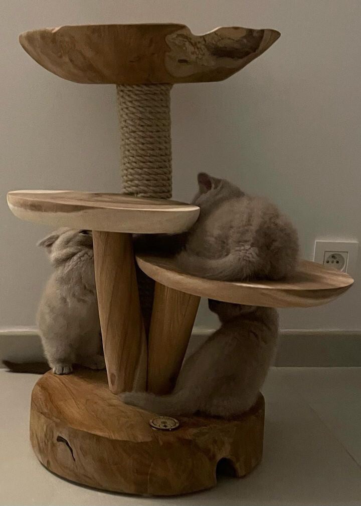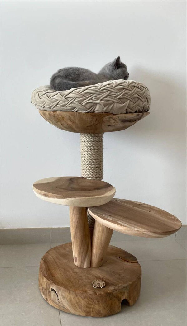 Eigen creatie van kittenpaal in combinatie Suar en Teak hout.