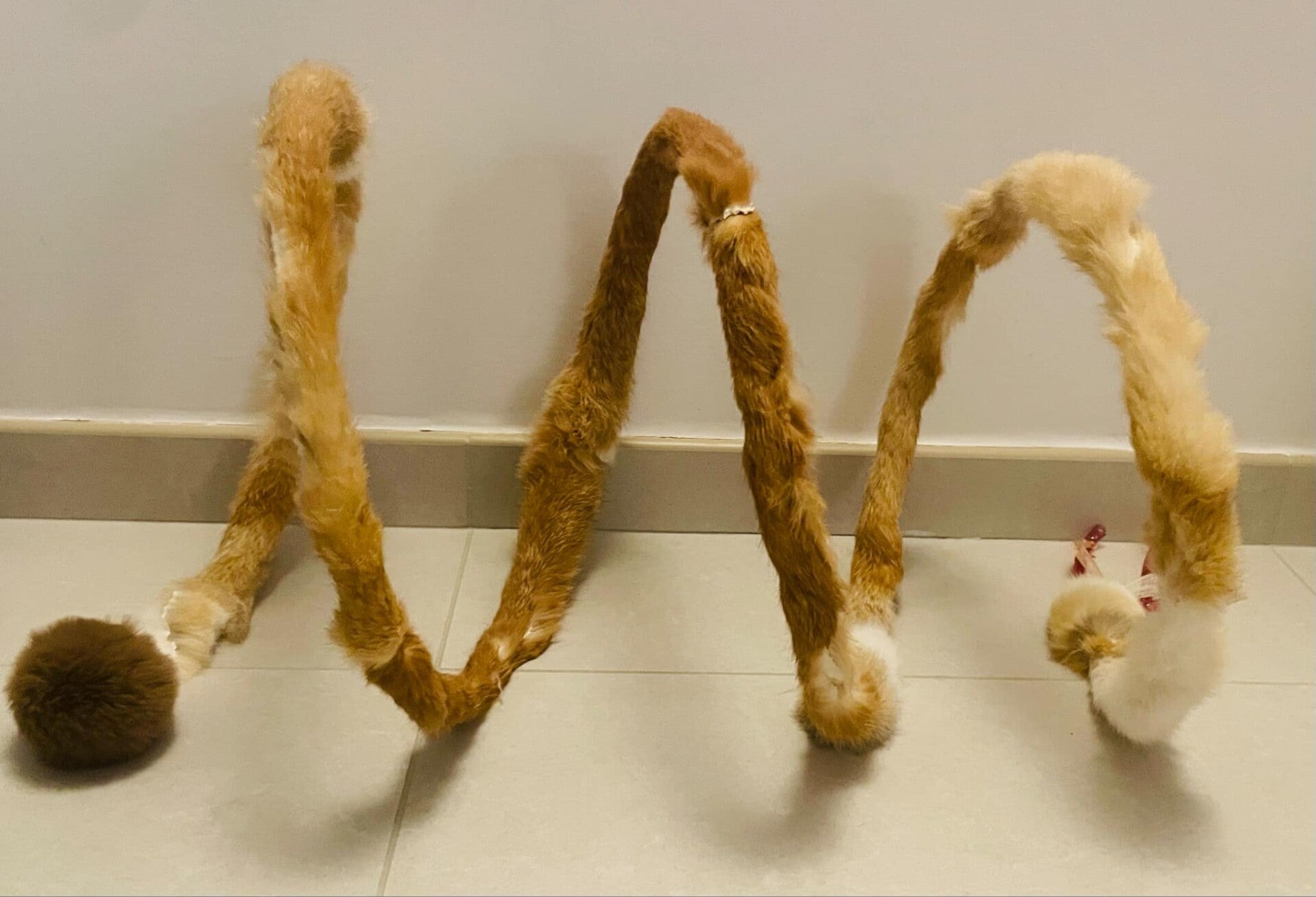 spiral completely wrapped with rabbit and finished with toys.