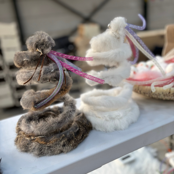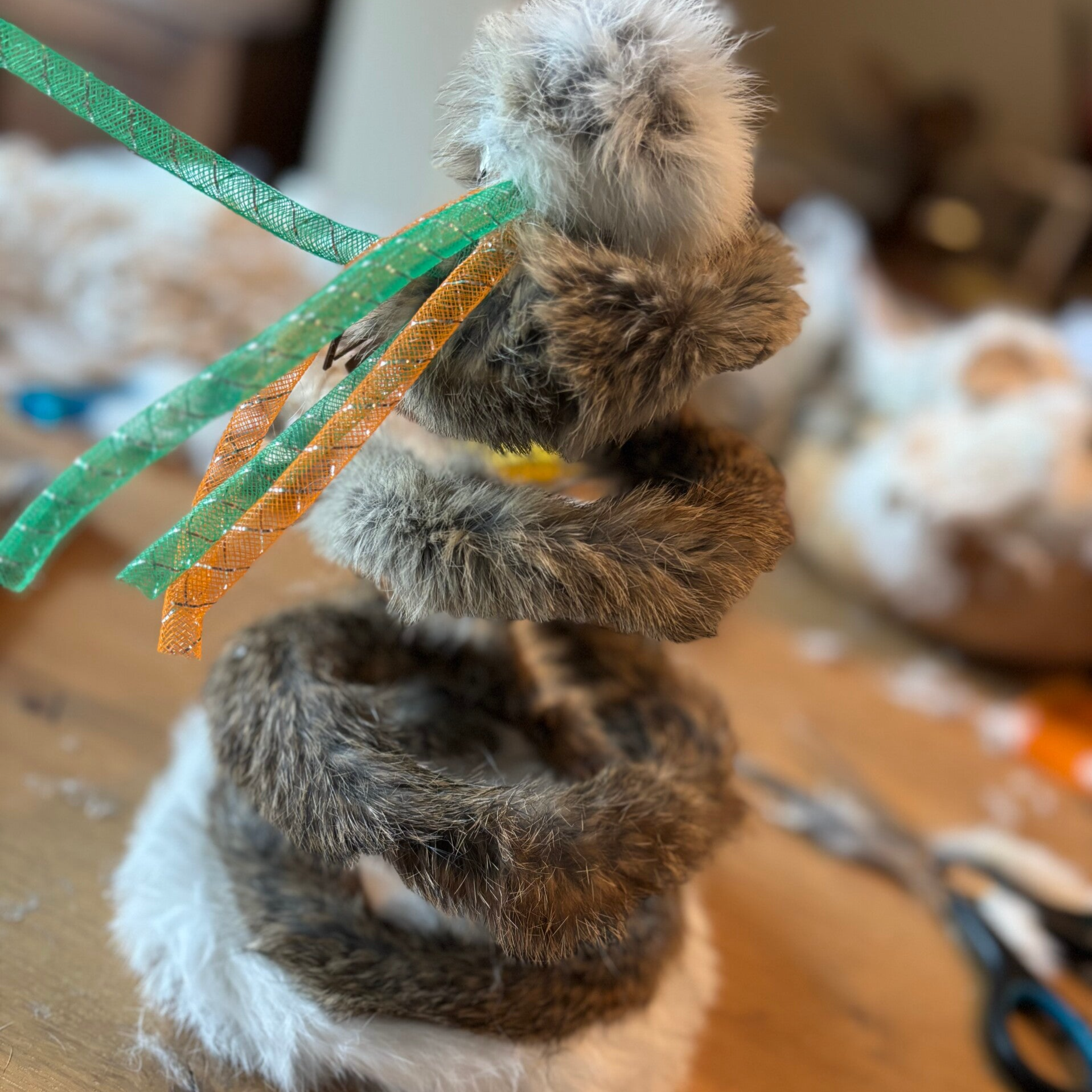 Toy spiral completely wrapped with rabbit and finished with toys.