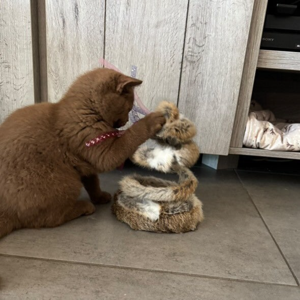 Speelgoed spiraal volledig omwikkeld met konijn en afgewerkt met speeltjes.