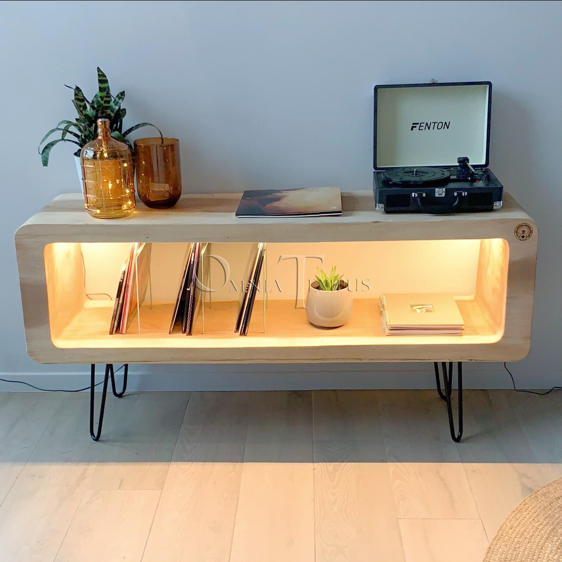 Voorzien met 4 hairpin poten van 30cm en 3 metalen LP-steunen.