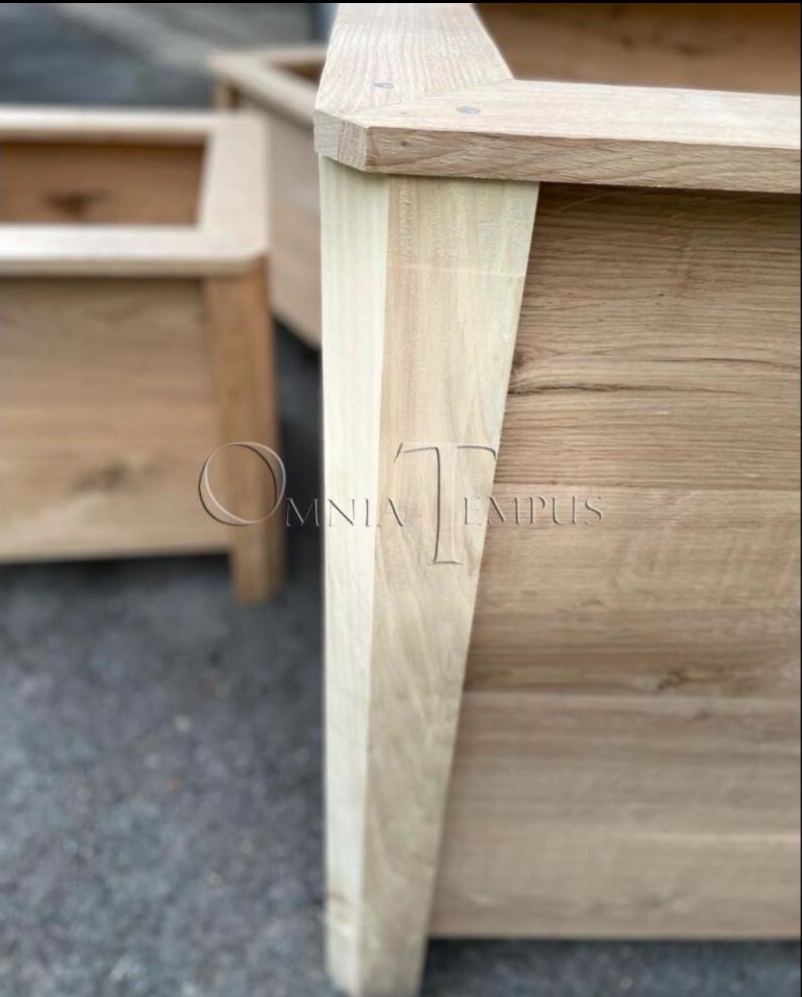 Deze handmade plantenbakken in volledige eik zijn weersbestendig.