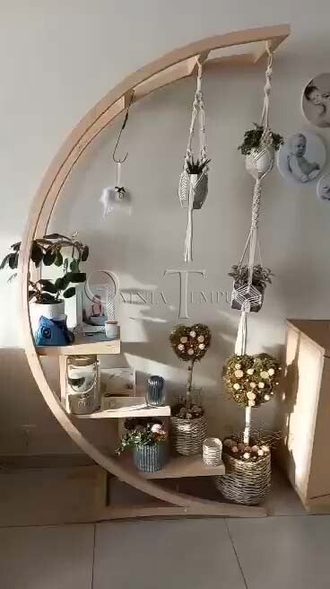 Wonderful curved plant tree that you can hang plants on and also has space provided to set.